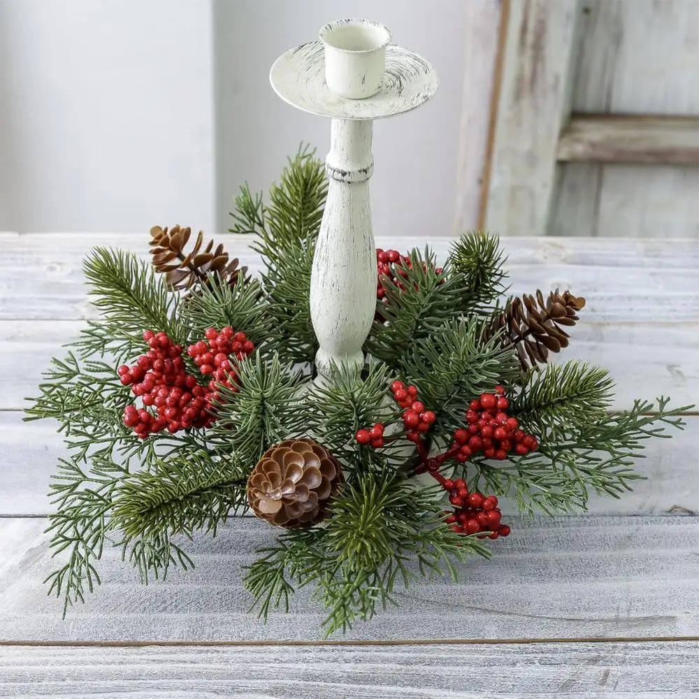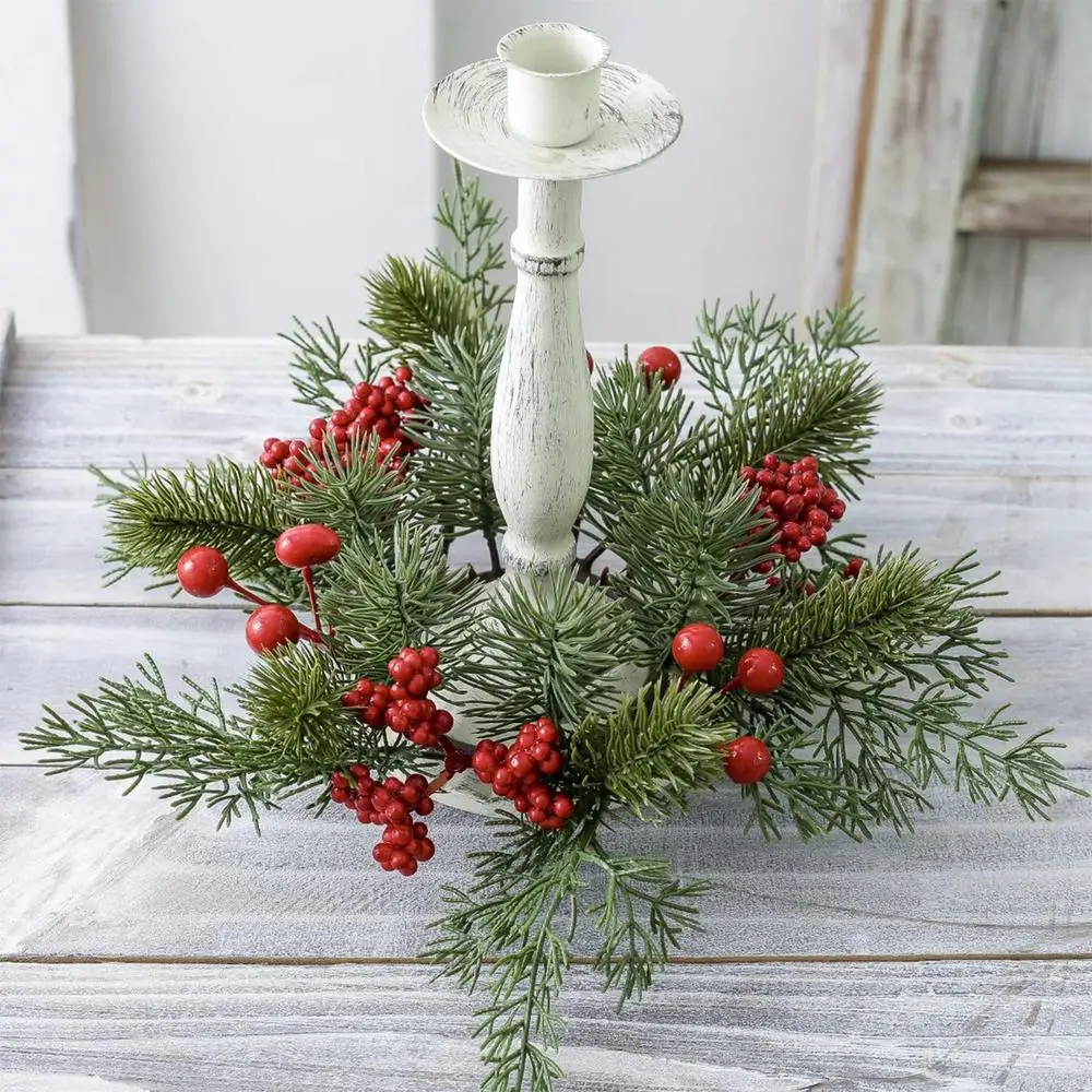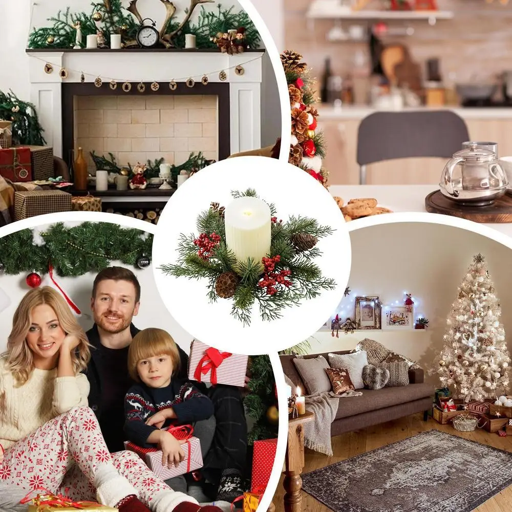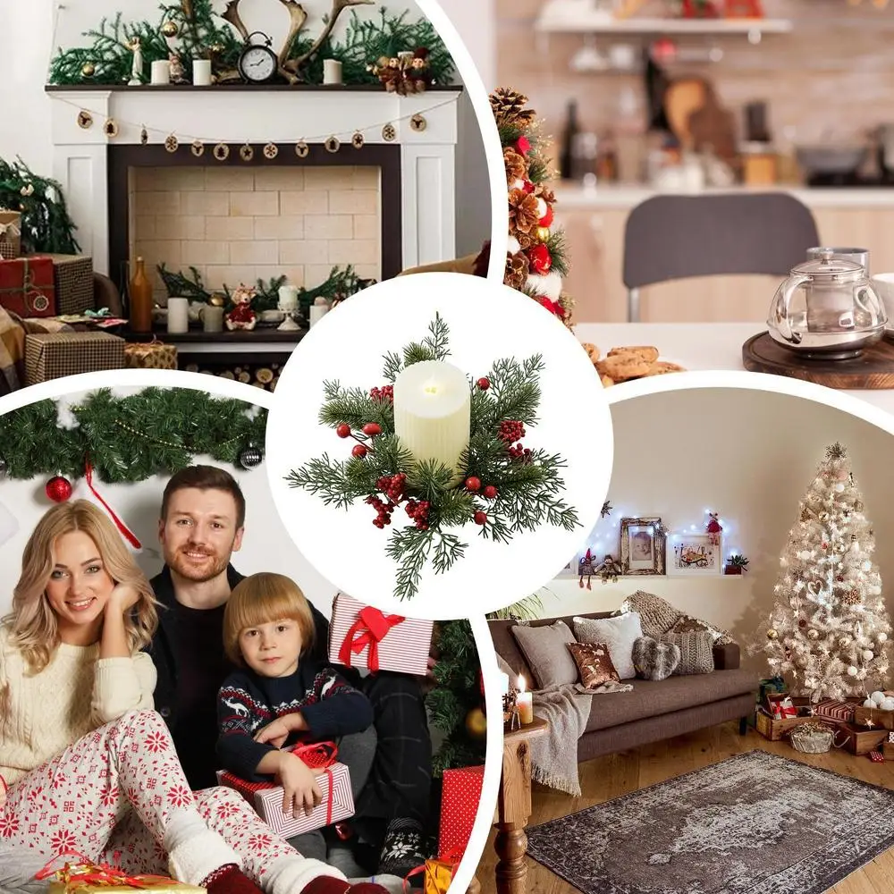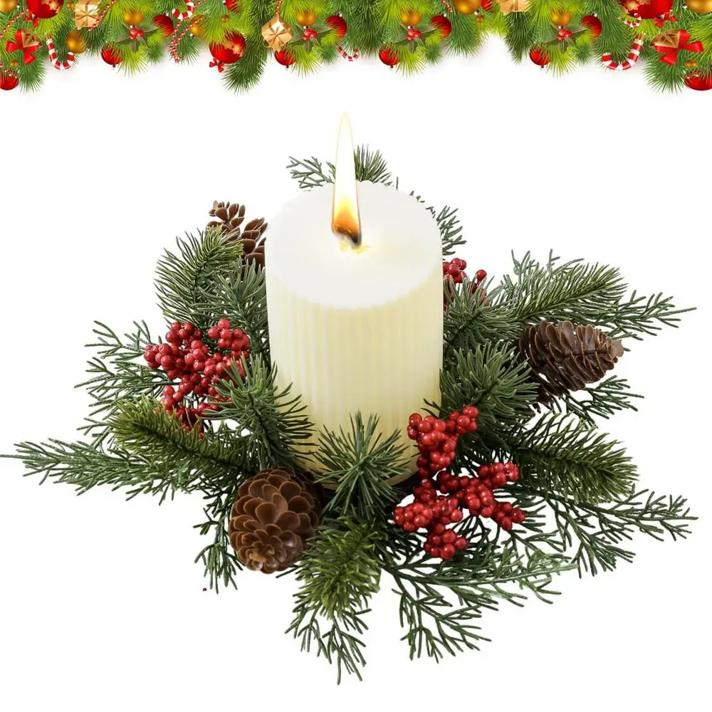 Christmas Candle Rings Table Decoration Christmas Wreath Candle Holder Ring Red Berries Table Centerpieces Candle Wreath