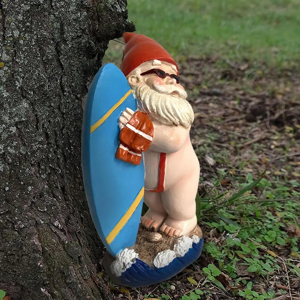 Naughty Garden Gnome Funny Resin Surfing Gnome Statue Garden Ornament Outdoor Garden Yard Decor Gnome Figurines