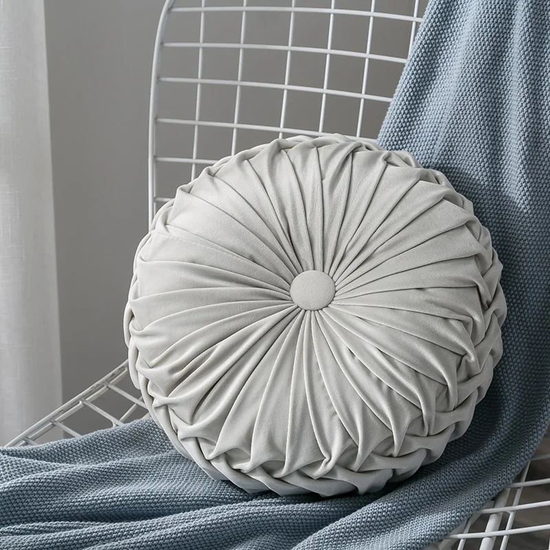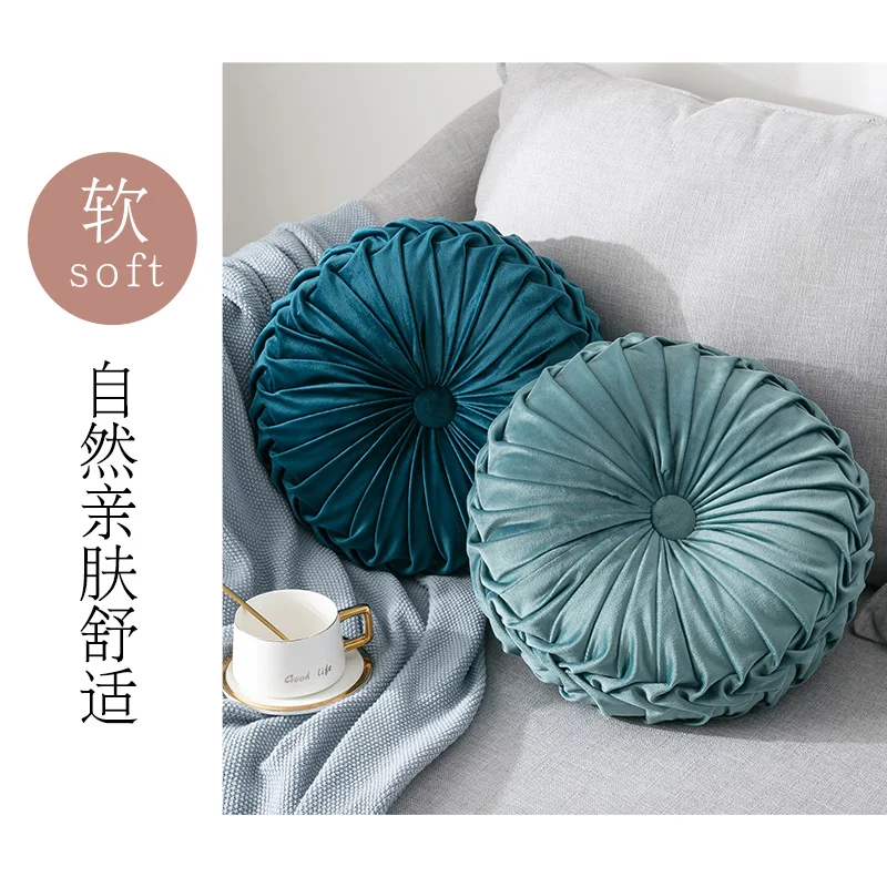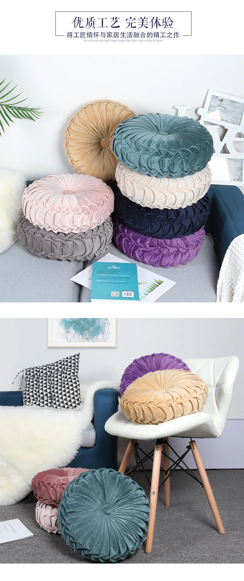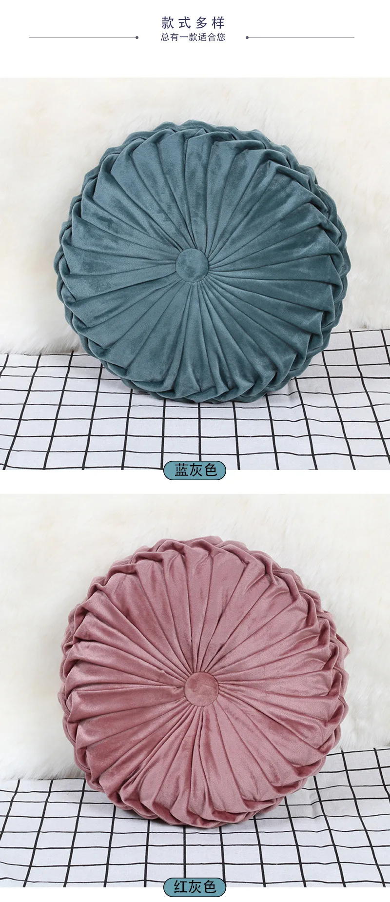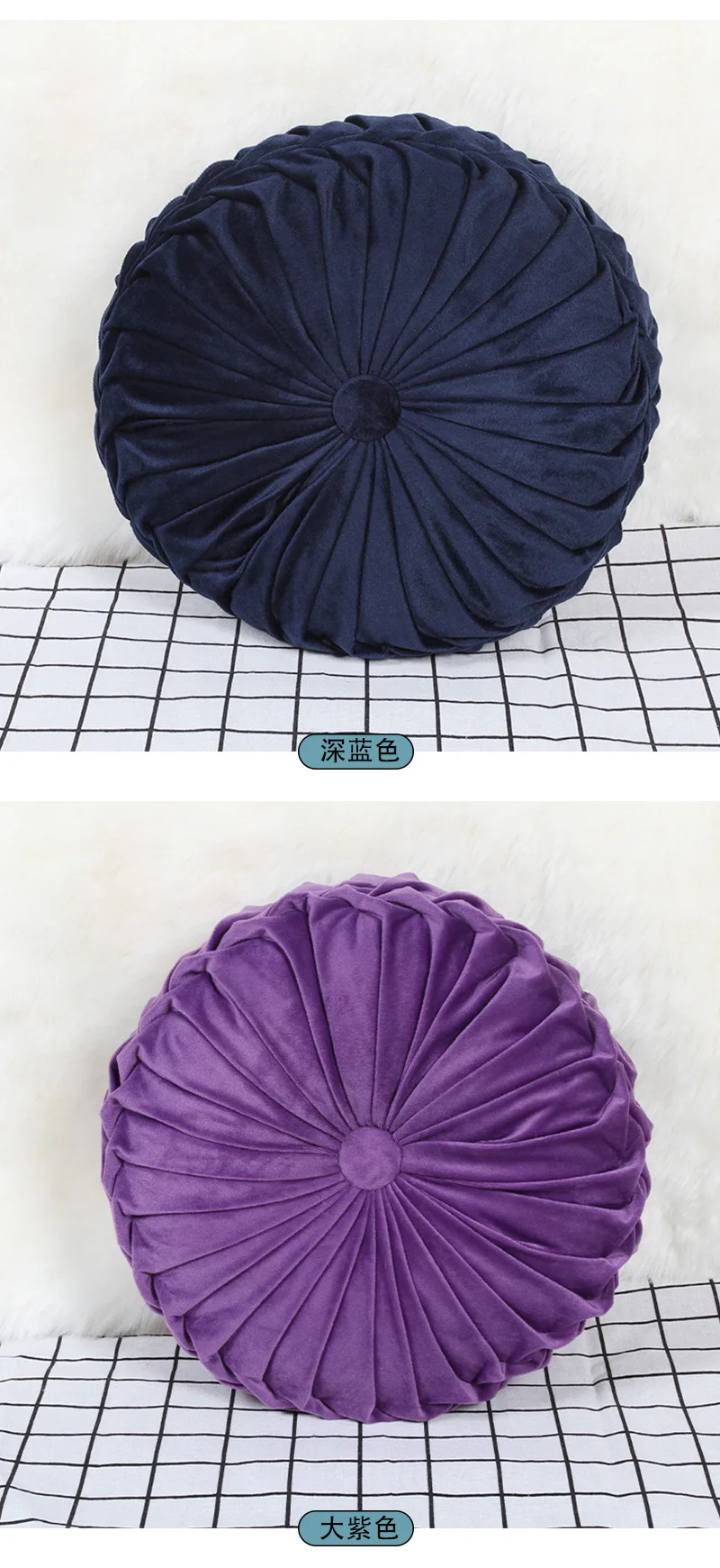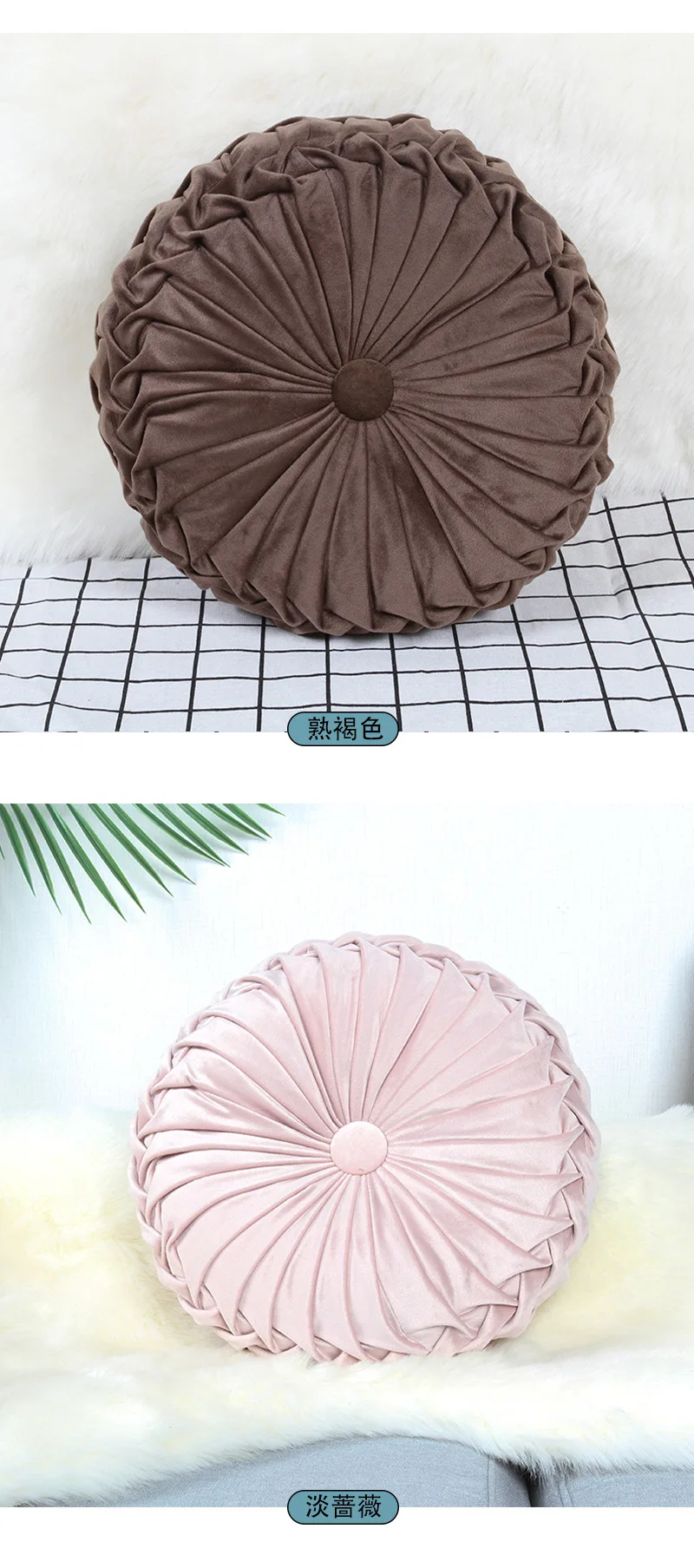 Velvet Pleated round Pumpkin Throw Pillow for Couch Floor Home Decor Cushion Coussin Home Decor Sofa Chair Bed Car Cojin 33Cm